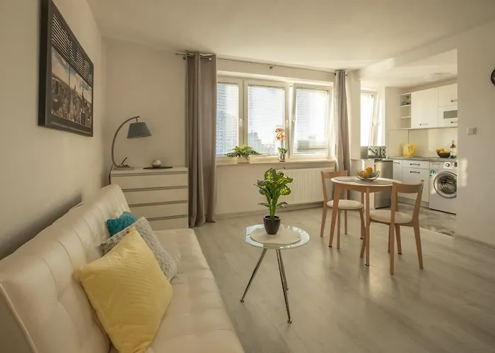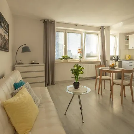 The 34 m² Ac And Fast Wifi Modern Big Studio Apartment Emilii Plater 55 Warsaw is situated in the Srodmiescie district of Warsaw, approximately a 25-minute walk from the Castle Square, and overlooks the city.